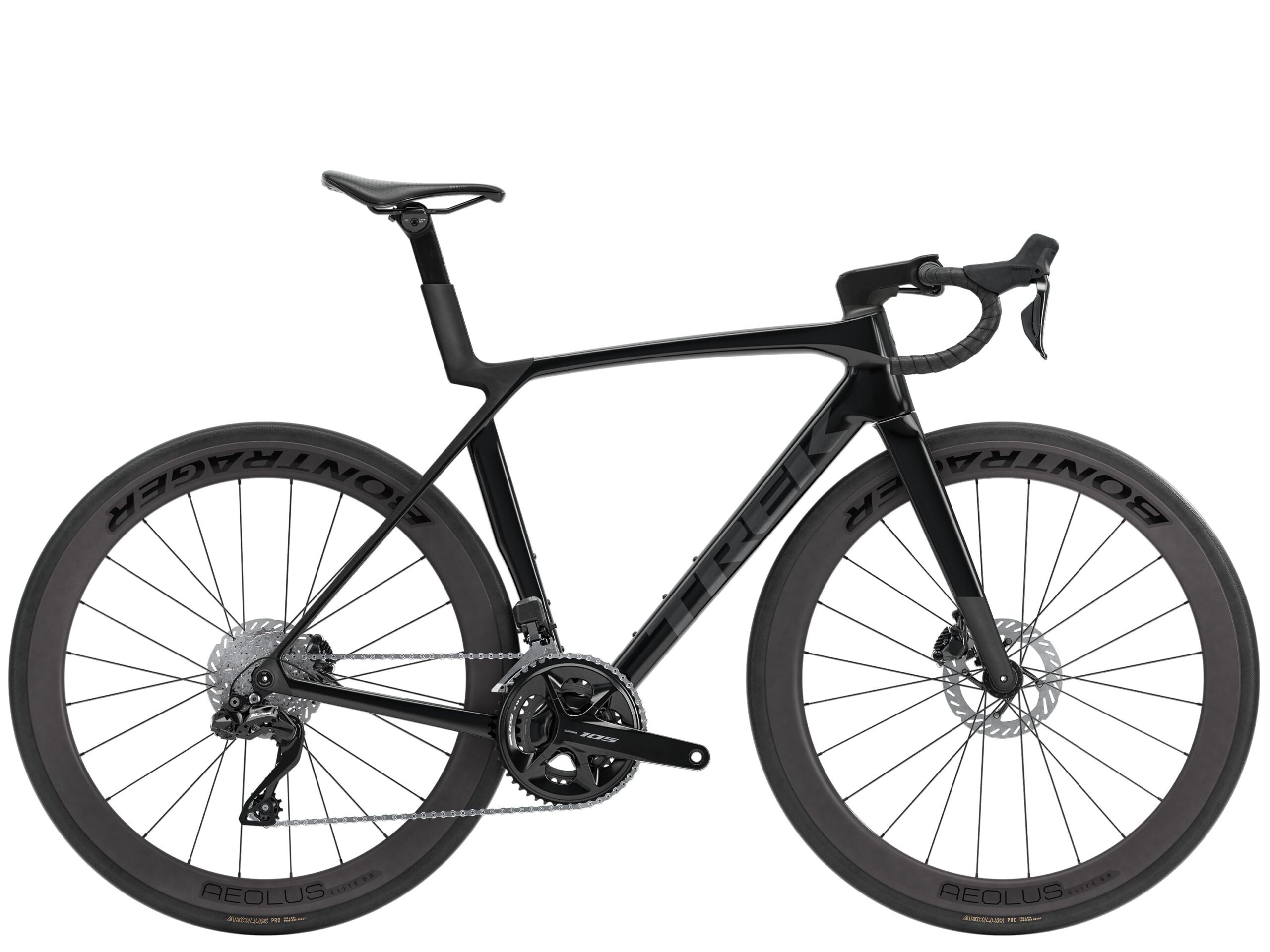 Roues Bontrager Aeolus Elite 50, carbone OCLV, Tubeless Ready, axe traversant 100×12 mm Bontrager Aeolus Elite 50, carbone OCLV, tubeless-ready, profondeur de jante 50 mm, corps de roue libre Shimano 11 vitesses, axe traversant 142×12 mm